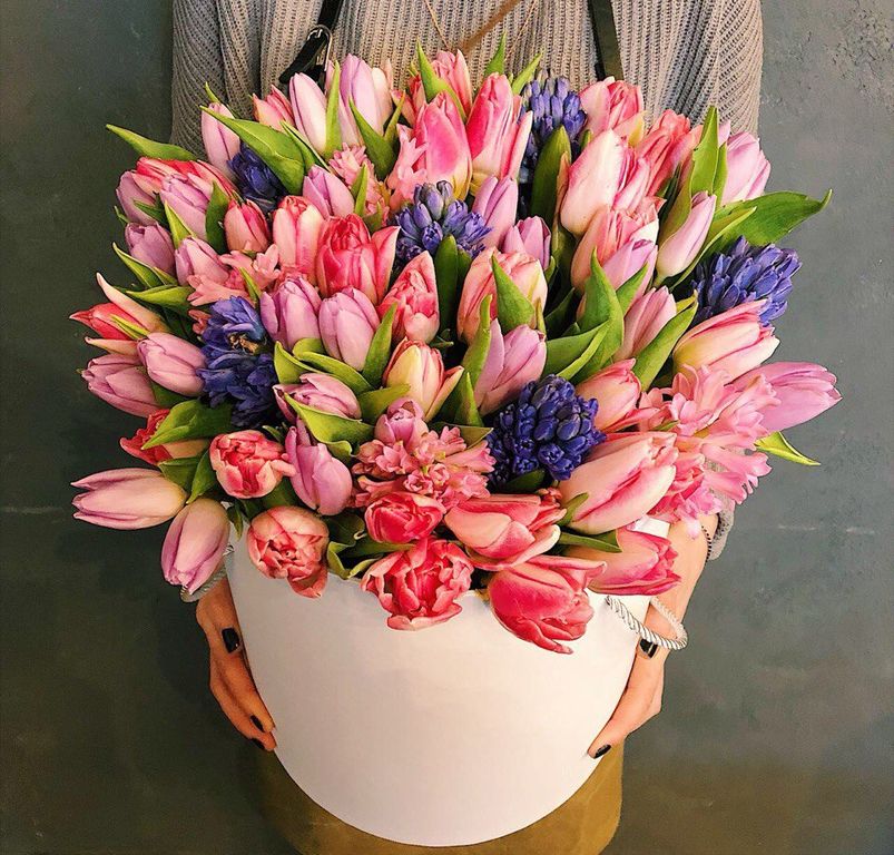 Тюльпаны и гиацинты в шляпной коробке 9700 руб. Купить в 1 клик В корзину По согласованию с клиентом, цветы, отсутствующие в наличии, а также сезонные растения могут быть заменены. По согласованию с клиентом, цветы, отсутствующие в наличии, а также сезонные растения могут быть заменены.